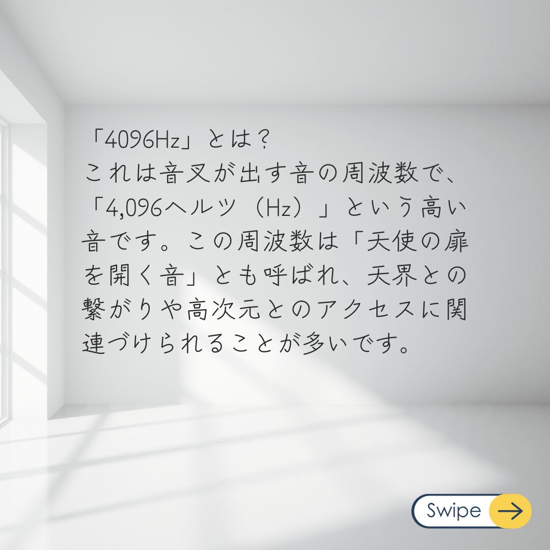 この周波数は「天使の扉を開く音」とも呼ばれ、天界との繋がりや高次元とのアクセスに関連づけられることが多いです。