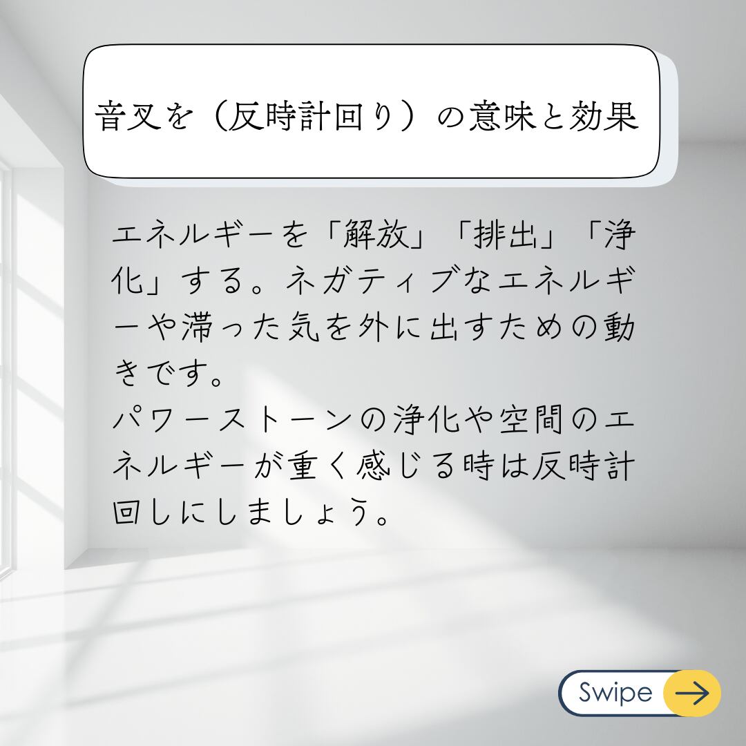 左回し(反時計回り) エネルギーの排出・浄化 ネガティブなエネルギーの除去時