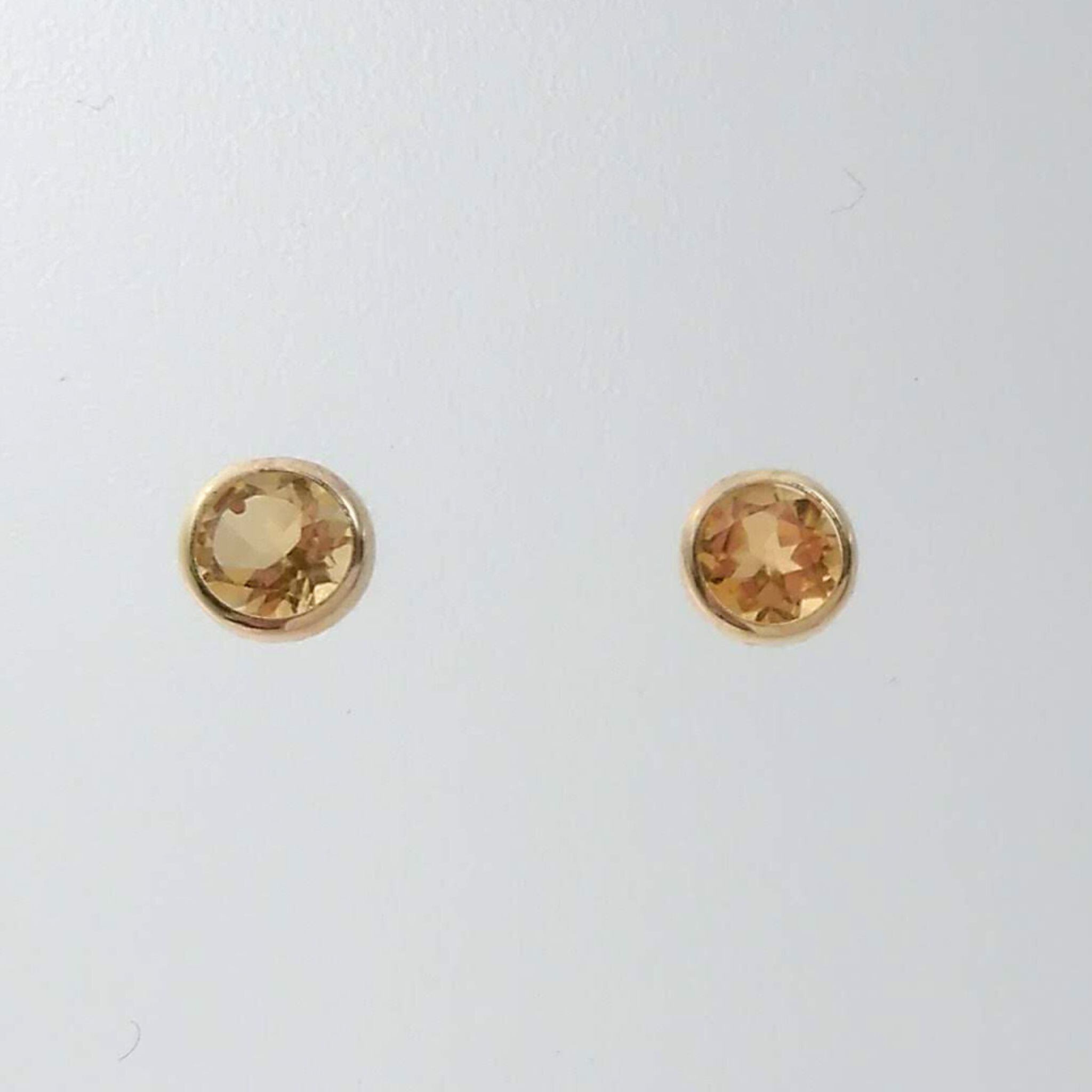 K10YG シトリン ピアス 11月誕生石 一粒 ラウンド 覆輪 ベゼル 金運 10代 20代 30代 40代 50代 60代 ジュエリー アクセサリー 日本製 送料無料 158536