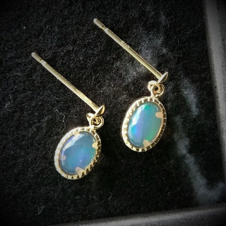 様々なカラーが角度によって浮かび上がる、魅力的なオパールのピアスです。揺れるタイプですので、オパールの特徴的な『プレイオブカラー』を楽しめます。