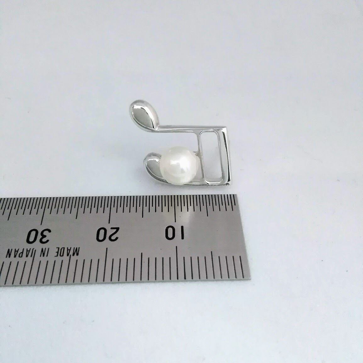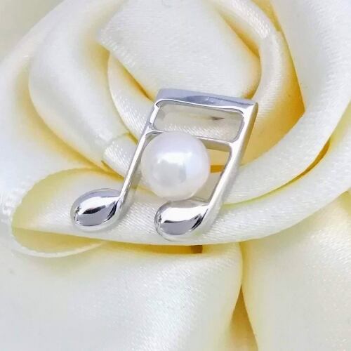 『音楽シリーズ』音符のピンブローチです。シルバーにキラリと輝く音符モチーフと、あこや真珠の優しく上品な雰囲気は、男女問わずワンポイントのお洒落にお勧め。