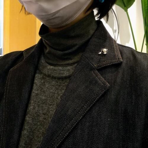 大きすぎないピンブローチは、他のお手持ちのジュエリーともコーディーネートしやすいアイテムです。
