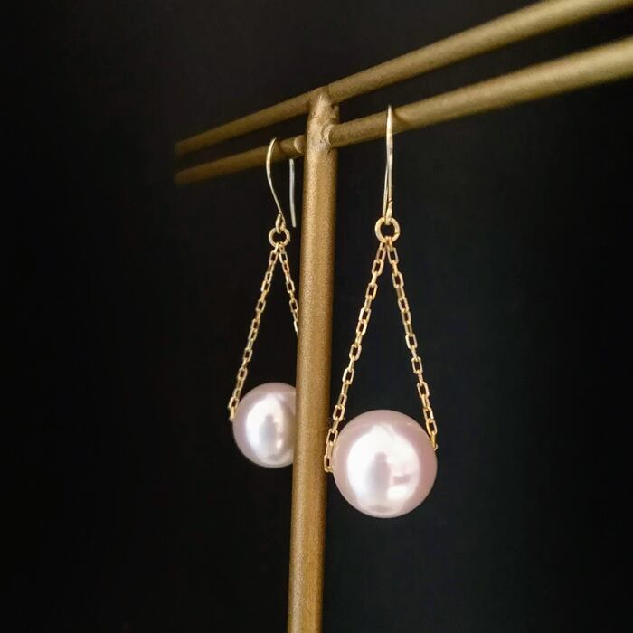 カットアズキのチェーンは動きに合わせて繊細な光を放ち、上品さと華やかさを併せ持つ素敵なピアスです。