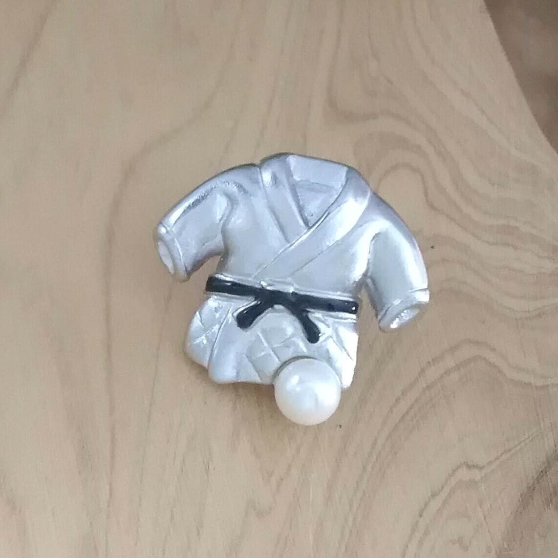 『スポーツシリーズ』柔道(黒帯)のピンブローチです。あこや真珠の優しく上品な輝きが美しい、大人の遊び心のあるデザインです。