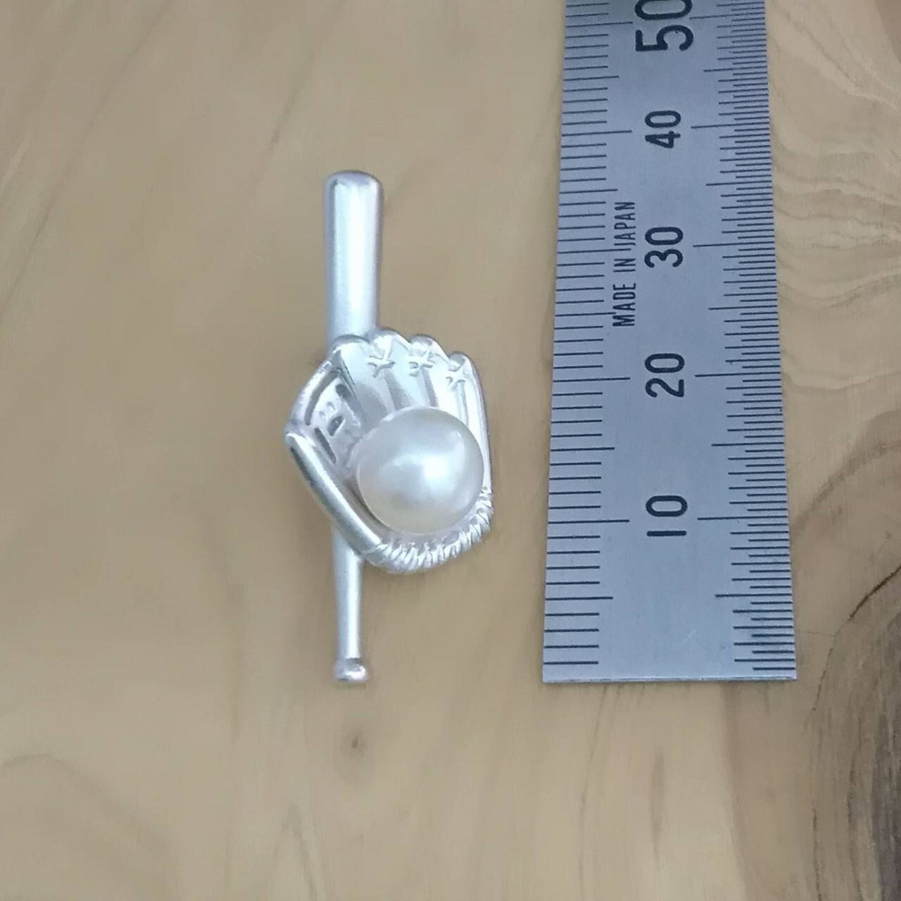 『スポーツシリーズ』野球のピンブローチです。あこや真珠の優しく上品な輝きが美しい、大人の遊び心のあるデザインです。